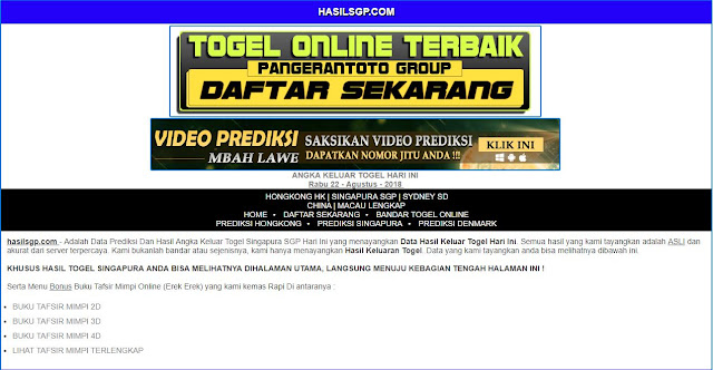 Baca Juga : Rumus Togel Untuk Mendapatkan Prediksi Akurat. Result hasil pengeluaran Hongkong 24 Mei 2018 pengeluaran hk malam ini. Utamakan Prediksi Anda Sendiri. Prediksi yang kami berikan hanya membantu Anda, Pilihan ditangan anda sendiri. Semoga para pengunjung dan pengemar Prediksi Togel puas dengan data yang kami berikan…. Terima kasih Data Keluaran Cambodia Tahun 2018 Sampai 2023 Terlengkap;. 2022 Terlengkap - Data SGP - Keluaran Singapore - Pengeluaran SGP, Hasil Result SGP Hari Ini tahun 2020, 2021, dan 2022 yang di update secara tercepat dan lengkap. Data Keluaran Togel Singapore 2023: Senin: Rabu: Kamis: Sabtu: